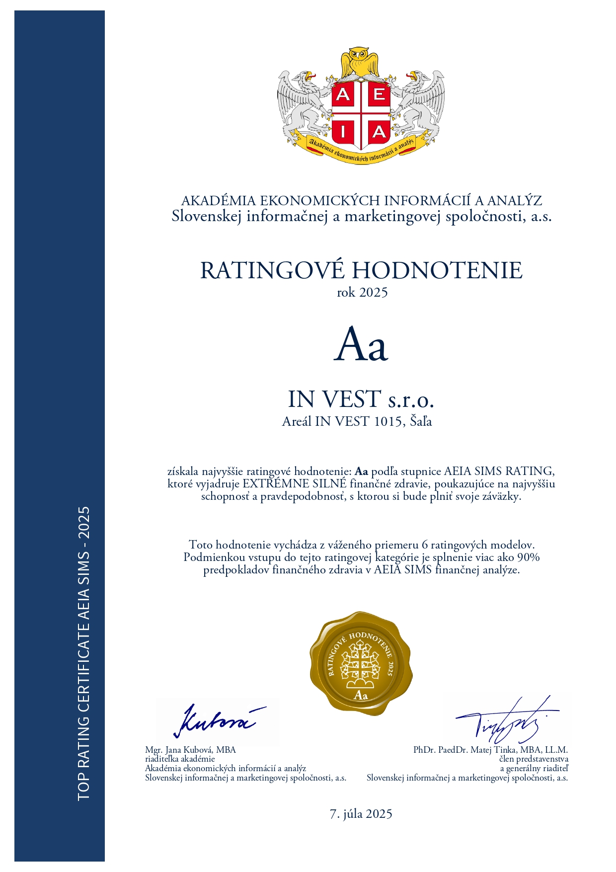 IN VEST s.r.o. je popredná slovenská stavebná spoločnosť so zameraním na prefabrikáciu, priemyselné a pozemné stavby. Na trhu pôsobí od roku 1992 a nadväzuje na viac ako tridsaťročnú tradíciu v stavebníctve.
